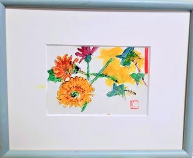 この絵はF6号の水彩画です。額に入れてここのデイサービスの壁に掛けて